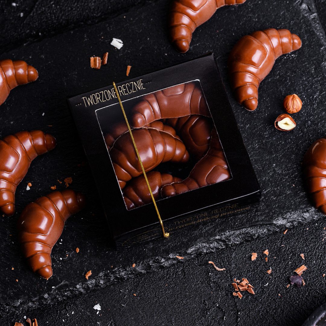 Ręcznie wyrabiany rogalik z belgijskiej czekolady mlecznej, w swoim wnętrzu skrywa nadzienie orzechowe na bazie białej i mlecznej czekolady z dodatkiem prażynek waflowych. ASpralinka to prawdziwy klejnot w naszej słodkiej koronie! Przekonajcie się sami