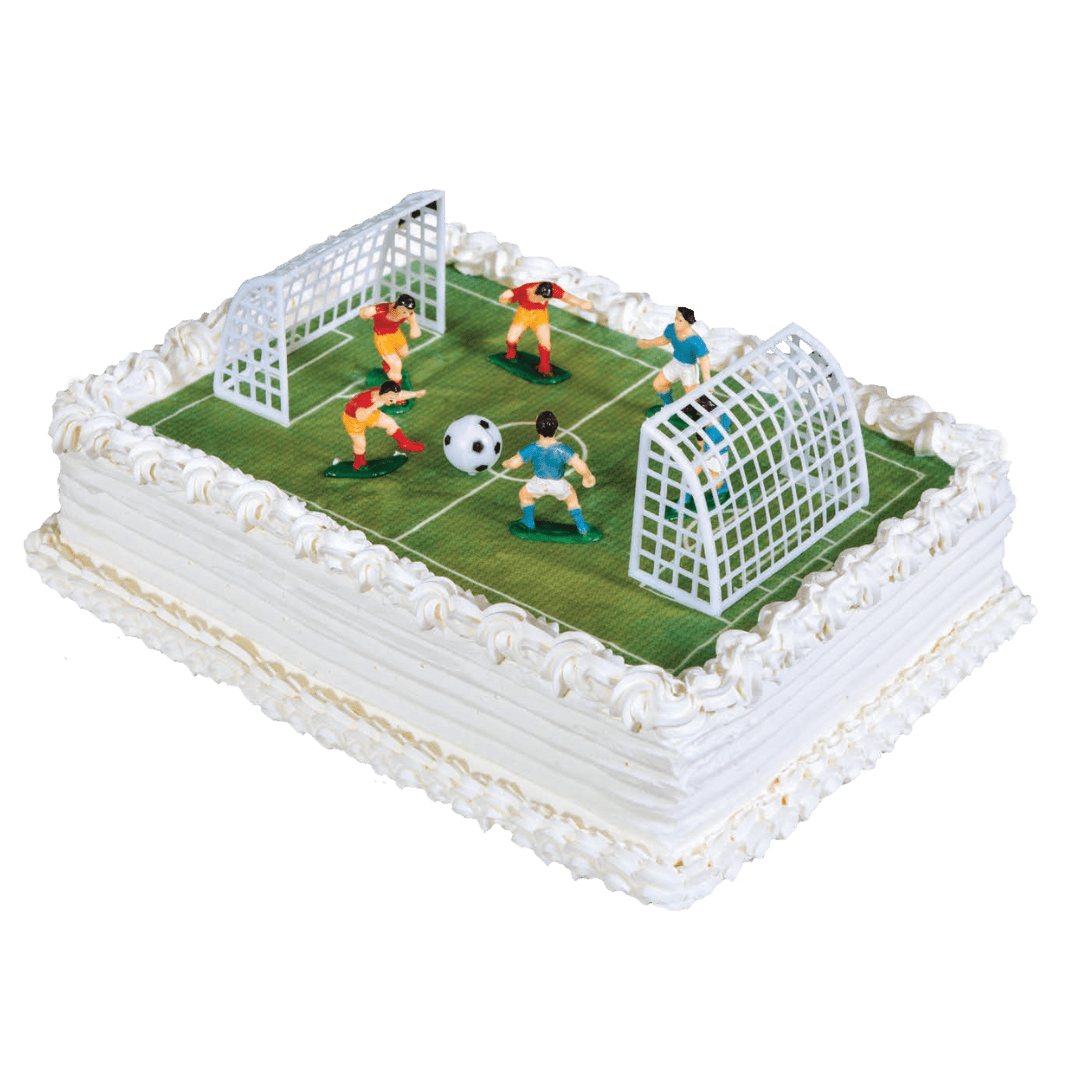 Tort na bazie bitej śmietany, udekorowany figurkami piłkarzy i bramek. Figurki są dodatkowo płatne 21,39 zł/komplet oraz dołączone do samodzielnego umieszczenia na torcie.