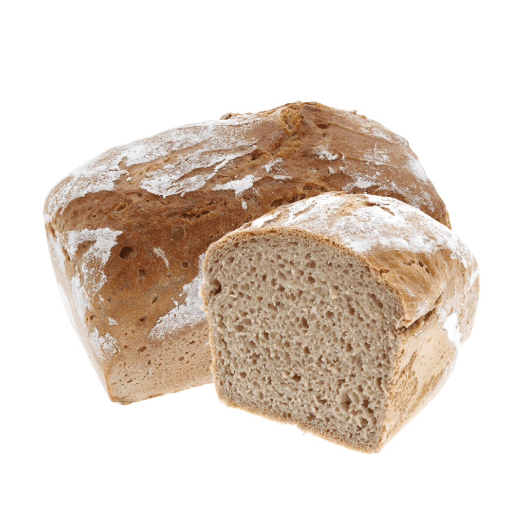 W 100% chleb żytni na naturalnym żytnim zakwasie. Zawiera jedynie trzy składniki: mąkę, wodę i sól.