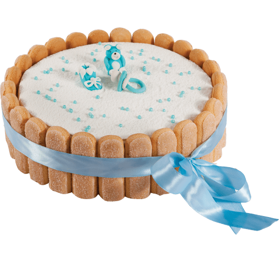 Tort na bazie bitej śmietany, udekorowany cukrowymi figurkami. Boki tortu są obłożone biszkoptami, a całość obwiązana wstążką. Minimalne zamówienie wynosi 1,1 kg. Od 3 kg tort wykonywany jest w kształcie prostokąta.