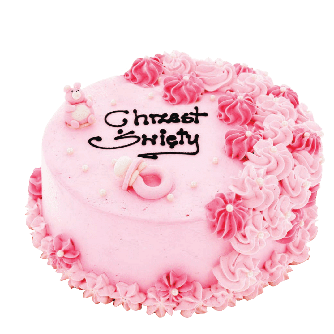Tort na bazie bitej śmietany, udekorowany kremowymi rozetkami oraz cukrowymi bucikami. Minimalne zamówienie wynosi 1,1 kg.