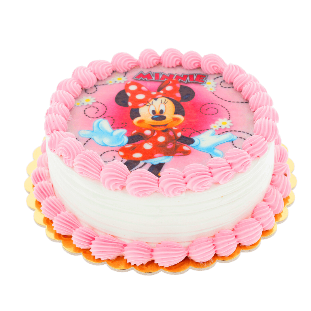 Tort na bazie bitej śmietany bez ozdób, wykończony różową szprycą. Oprócz przygotowanych przez nas motywów z najpopularniejszych bajek, Klient może sam dostarczyć nam plik z odpowiednim nadrukiem. Od 3 kg tort wykonywany jest w kształcie prostokąta.
